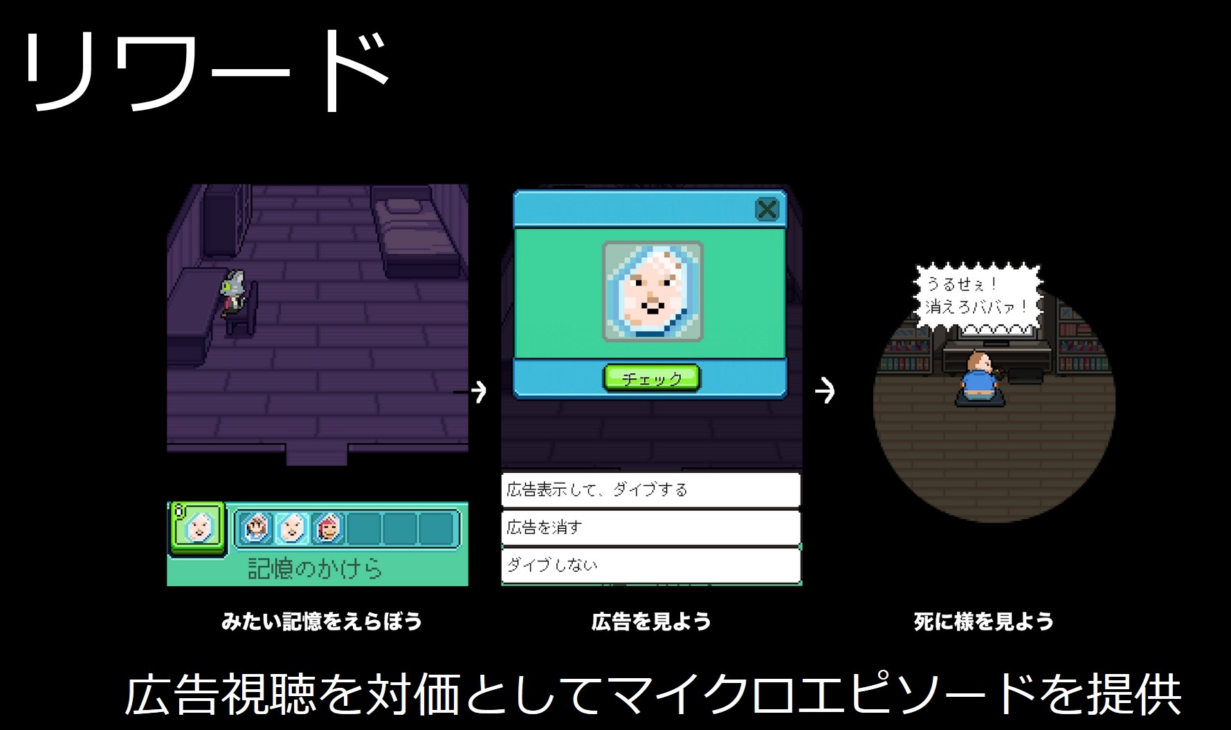 また、広告を見ることで登場キャラクターの死因を見られるマイクロエピソードを提供し、プレイヤーの満足感を高めるようにも心掛けたそうだ。