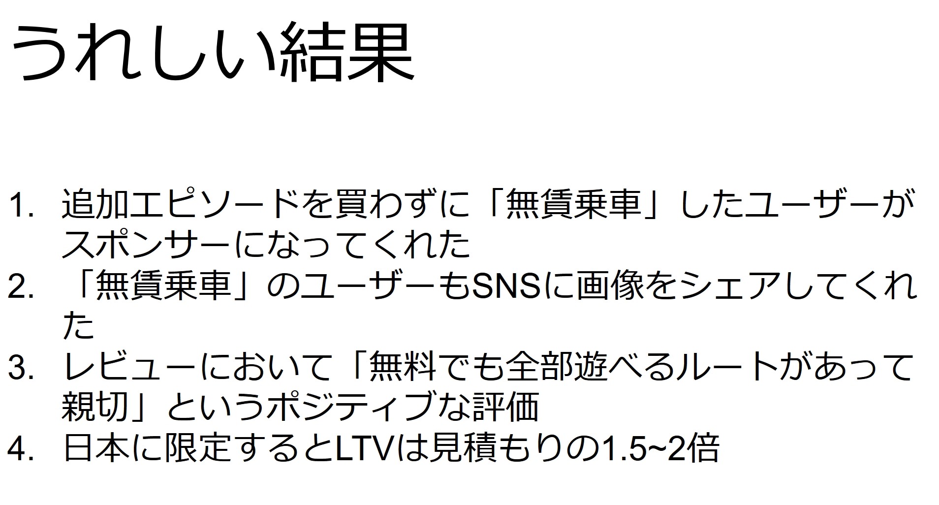 また、「どこから人がくるか」も重要で、例えばゲームキャストからダウンロードしたプレイヤーはゲーム購入率が非常に高く、平均的な客の3倍以上の収益があったという。