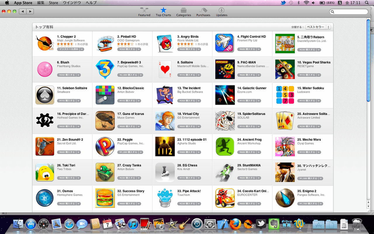 itune App Storeでは一定の範囲(というか、携帯ゲームっぽい安さで)の価格に収まっていたゲームが、MacAppStore内ではばらついている。