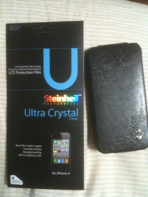 GARIZのレザーケース(iPhone4用)とStenheil Ultra Crystal Clearのフィルムをセットでプレゼント。