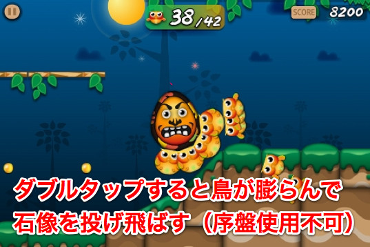 移動したい方向の逆側をタッチして鳥が石像を運ぶ、というのは慣れるまで分かりづらい。
