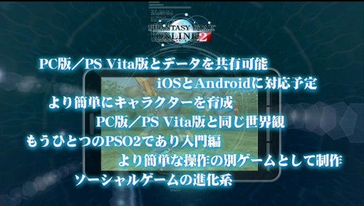 PSO2はすでにPS Vitaでリリースされると発表があったが、WindowsとPS Vitaはオンラインプレイも可能なオンラインRPG、iPhone版は独立したゲームになっている。