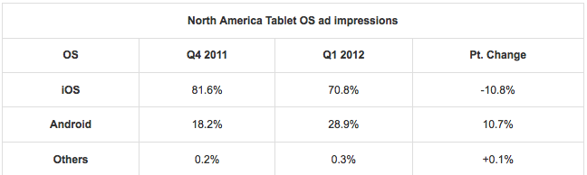 Android chasing down iPad in US as Apple loses near 10% share in Q1 2012 | feature | InMobi news | PocketGamer.biz
