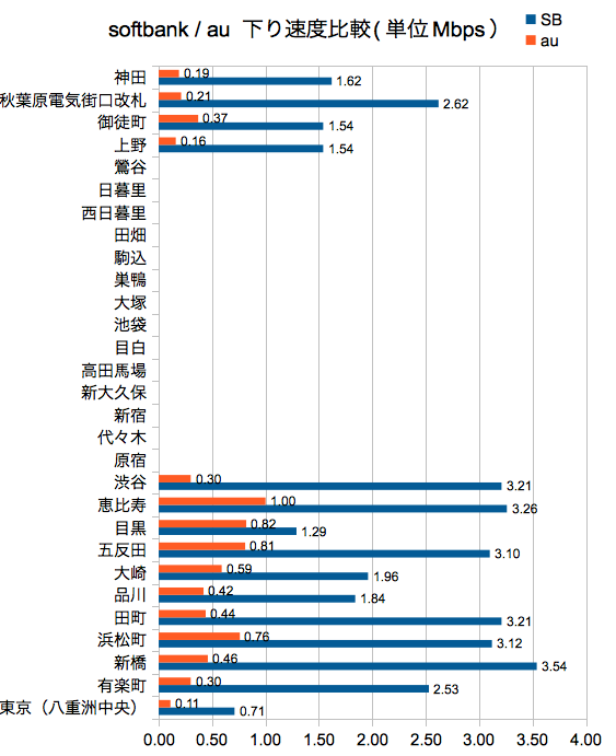 なぜか、auは全体に遅くなってsoftbankは激速に。