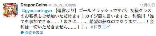 なにげに先々のイベントについても喋ったりしているので、ドラコイプレイヤーは必ずフォローすべきツイッターでもある。