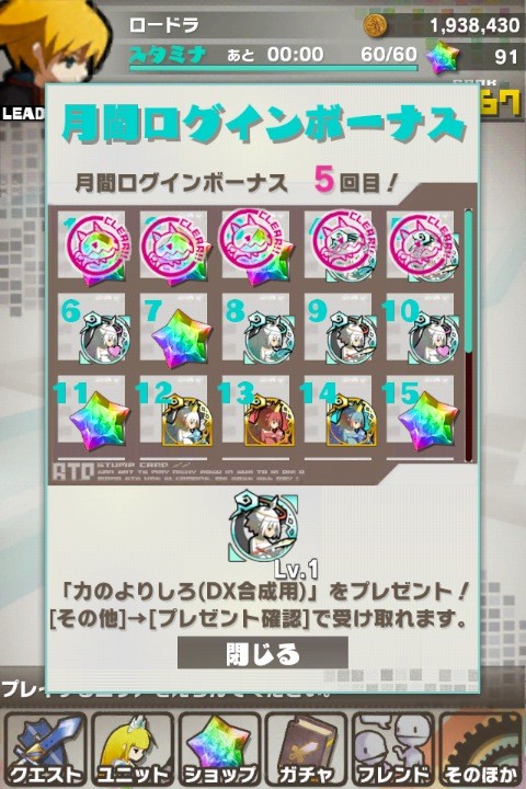 また、ログインボーナスがカレンダー式になってわかりやすくなった。
