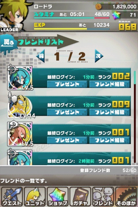 細かい所ではフレンドがページングに対応し、ロードがサクサクに。