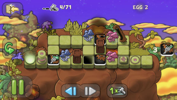方向転換などの移動パネルを設置してキャラをゴールに導くパズルゲーム。