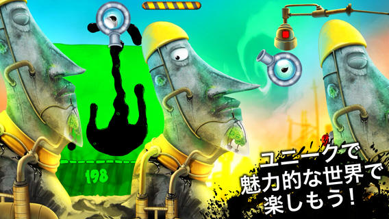 オイルで動く変な生物に、オイルを与える物理パズルゲーム。
