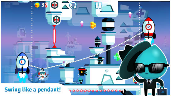 左右にあるロケットをスライドさせて吊るされている人を動かしてゴールを目指すアクション。