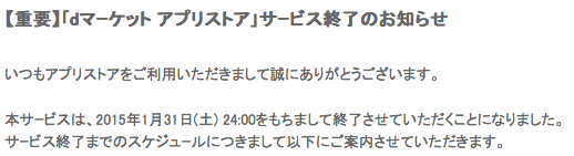 11月17日、ドコモより、dマーケットアプリストアのサービス終了が発表された。