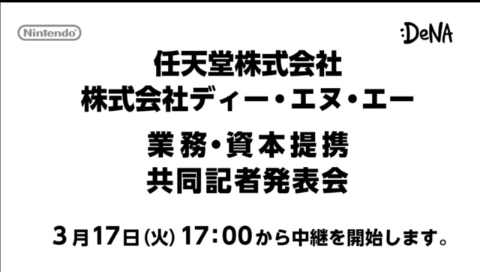 任天堂とディー・エヌ・エー(DeNA)は3月17日、業務・資本提携することで合意した。
