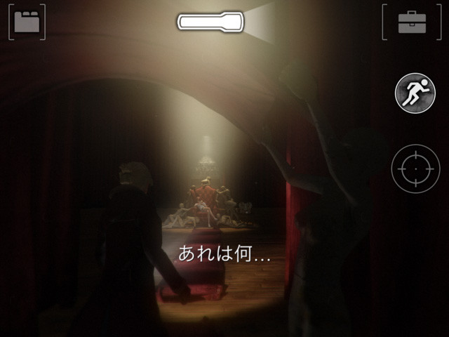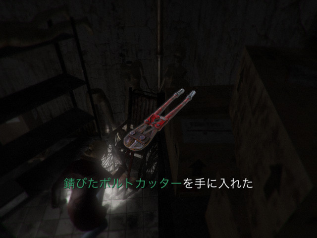 起きると視界が灰色になっているが、風呂場に飾られている救急箱を取って使えば先に進める。照準マークを押して戦闘モードになっているとアイテムがとれないので注意。