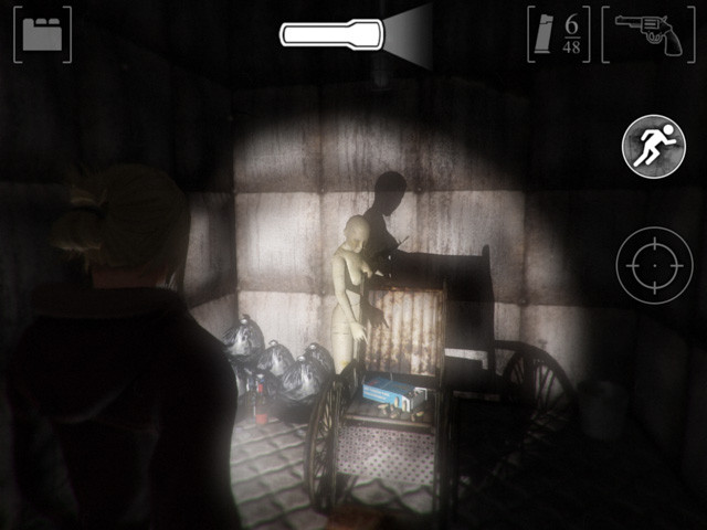 リボルバーを取ると人形が襲ってくるが、鉄パイプで迎撃した方が楽なので、リボルバーの弾を浪費しないように注意。