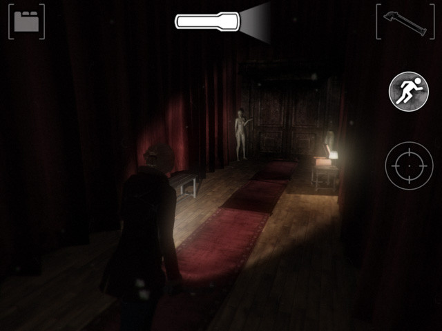 先に進むと不気味なイラストがあり、普通に進むと少女の影とマネキンが襲ってくる。