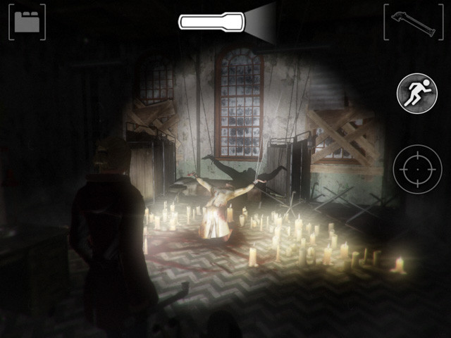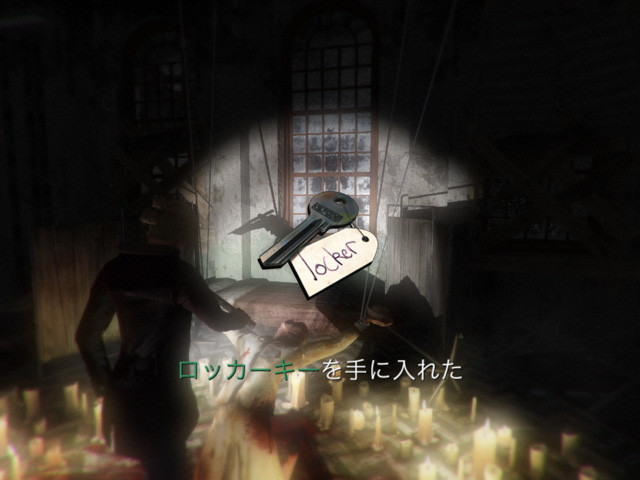 そして、ドクタールームの隣の部屋に入り、中央に釣られている死体にメスとナースキャップを使う。
