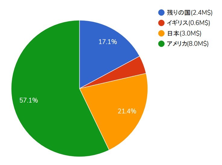 売上げで見ると、アメリカ、日本、その他の国、イギリスの順に。