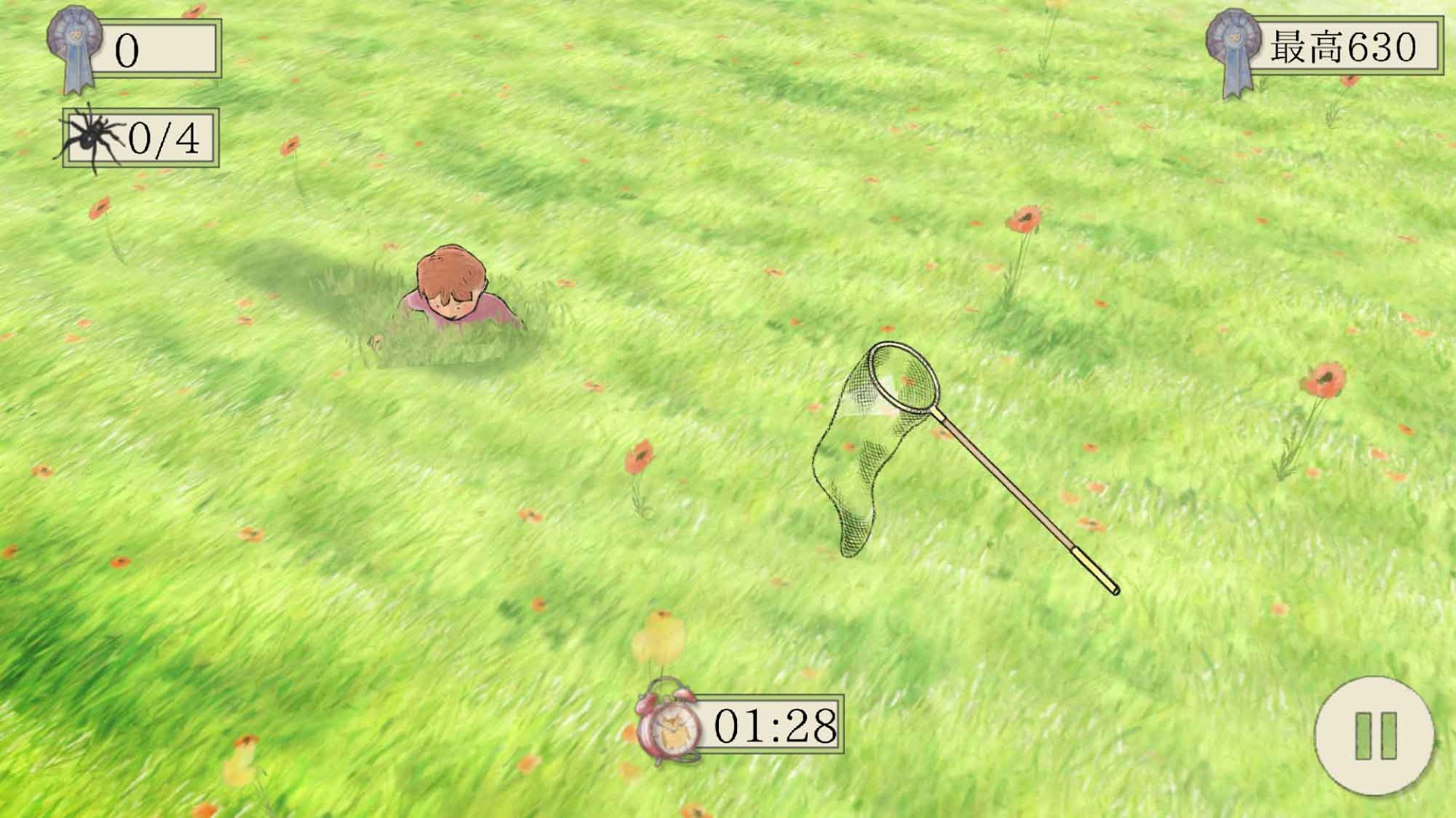 草原で虫を捕ったり。