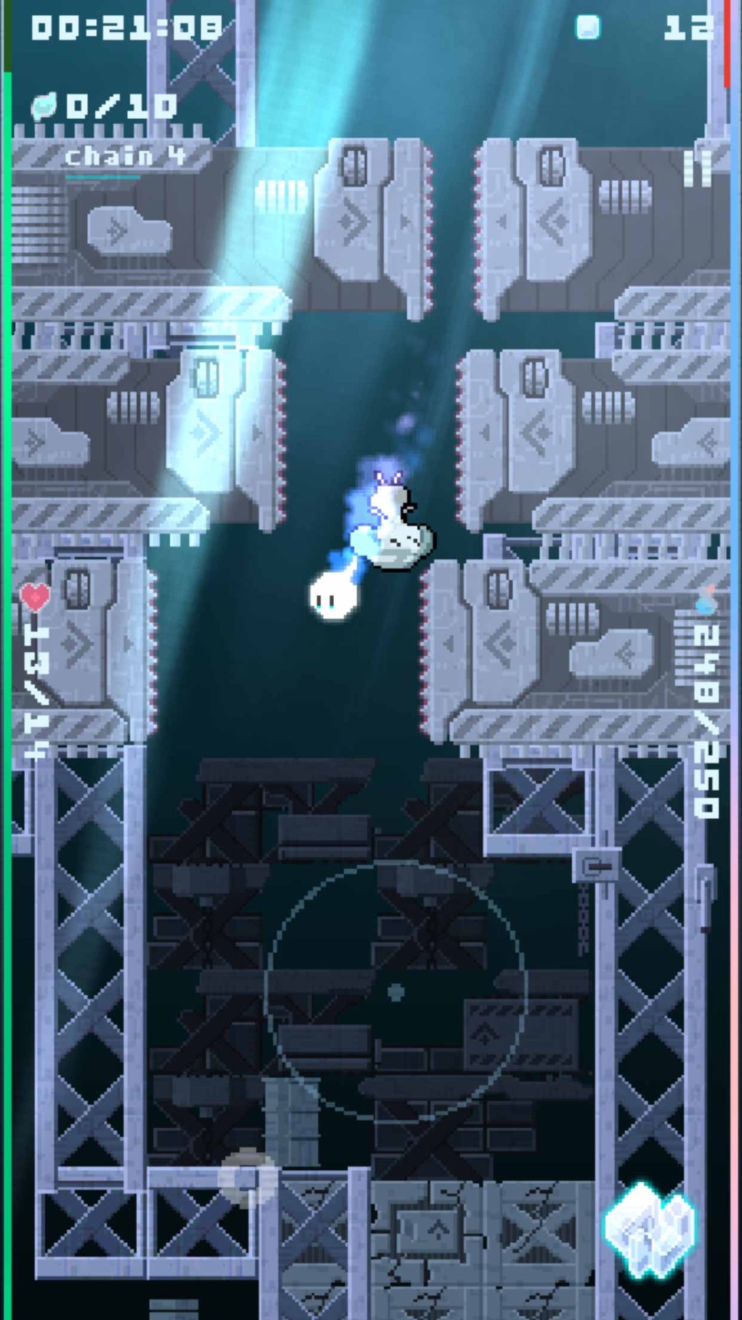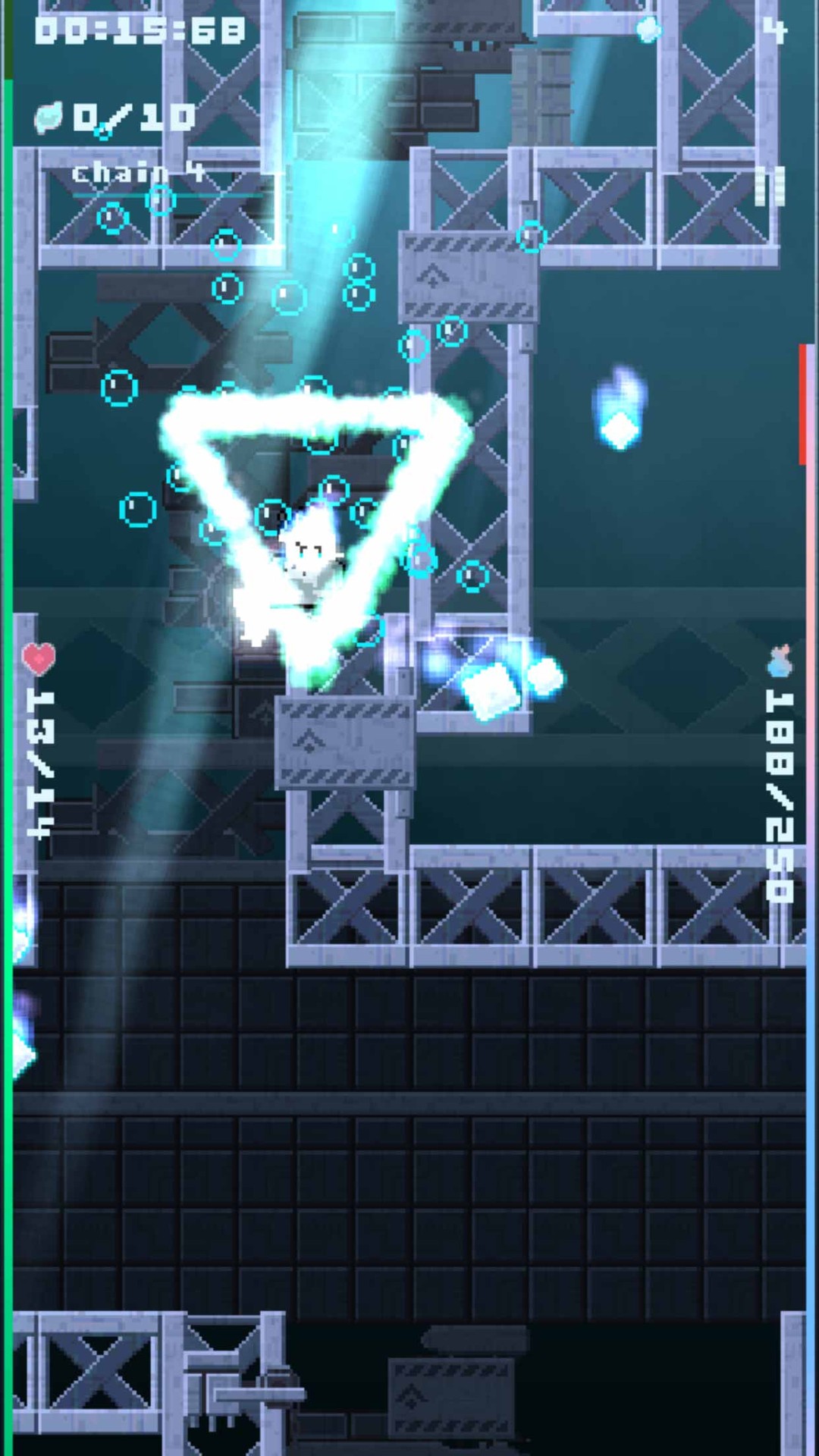 ランダム生成のステージを落ちていくアクションには成長要素も含めて『Downwell』の影響を強く見て取れるが、無防備に落下していく少女を守るアクションを取り入れて独自性も確保している。