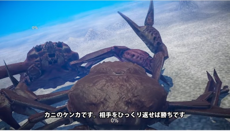 今作はリアルな蟹になって喧嘩し、相手をひっくり返すゲームになるという。