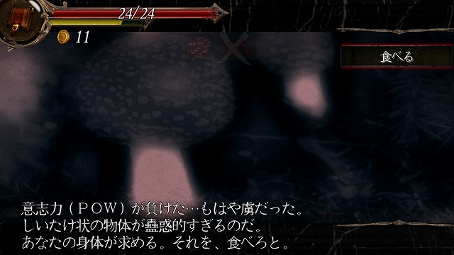 しかし、意志力(POW)が低い私は衝動的にキノコを食べてしまった。幸い、キノコに毒はなかったが……どうやら群馬の土地が、原始的な感情を増幅しているようだ。