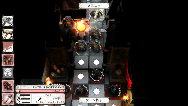 敵もプレイヤーと同じようにアクションポイントで動くため、移動距離などを調節したり、細い通路を利用してダメージを防ぐ戦術が重要になってくる。