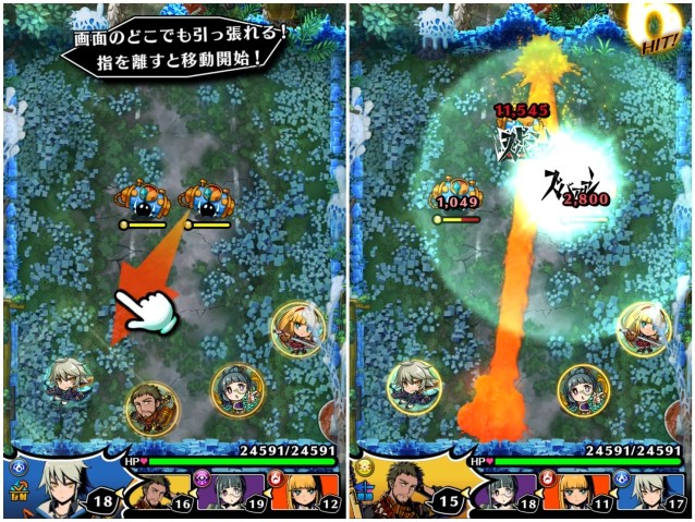 1手ごとに敵のカウントが進んでカウントがゼロになると反撃を受けるところ、攻撃中に仲間に接触するとリンクコンボが発生したり、一定のターン数が経過するとスキルを使えるところなど、基本はモンストを踏襲している。