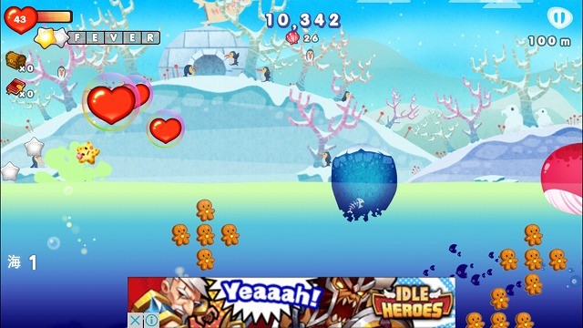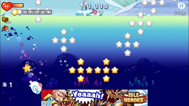 どれほどプレイがうまくてもハート(時間制限)が尽きてしまったり、障害物にぶつかるとゲームは終了となるが、うまいプレイヤーと下手なプレイヤーでは下手すると5倍以上も得点が変わり、貝殻の入手量も変わっていく。