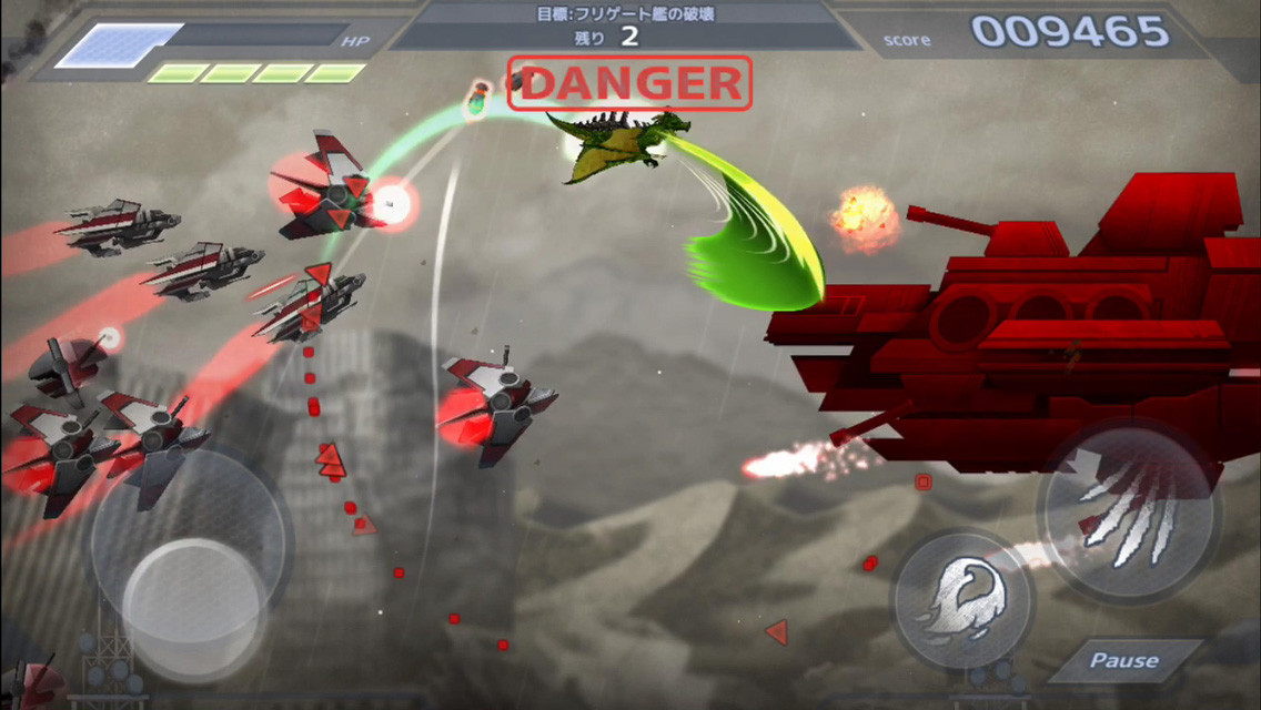 多くのシューティングは慣性を気にせずに移動できるが、本作のドラゴンはその場で旋回することができない。