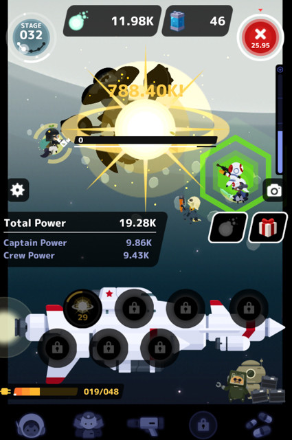 気が向いたときだけ連打して、仲の良いクルーを隣り合わせに配置したり、まれに出現する砲座にクルーを乗せたてゆったり遊ぶように作られている。