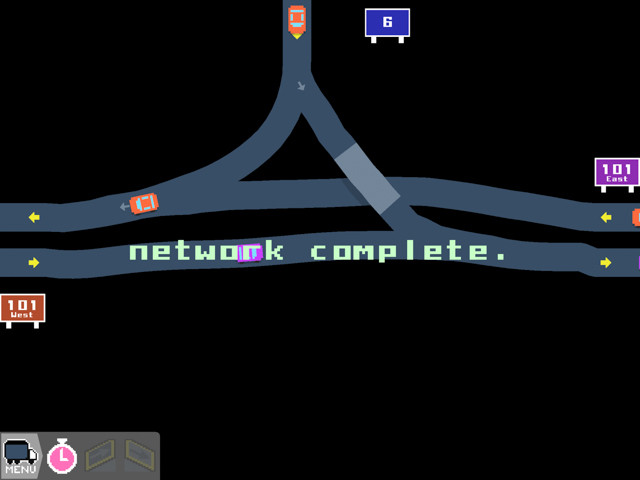 で、全ての道路の入口と出口をつなぐと「network complete.」と表示され、ステージクリア目前となる。