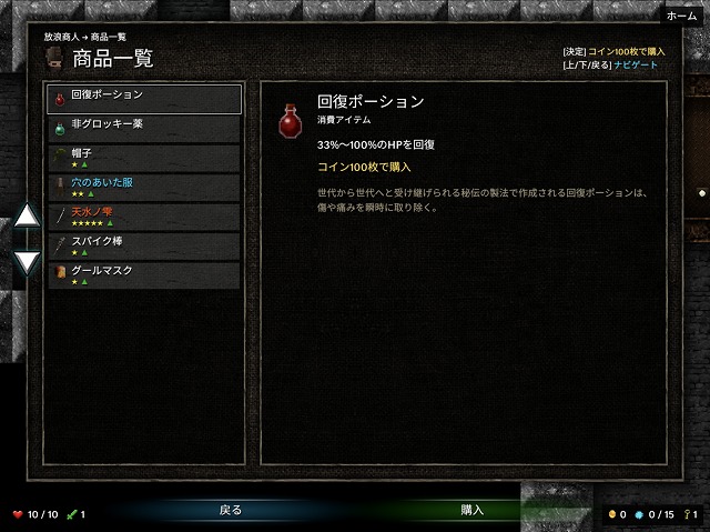 死んだら最初からコンテニュー要素なしにやり直しだが、毎プレイ何かしら面白いアイテムが登場するので、リプレイは楽しい。