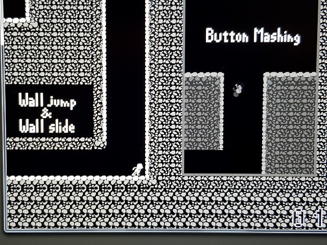何も操作していないと主人公は走り続け、プレイヤーがボタンを押すとジャンプする。壁にぶつかっているときにボタンを押すと、壁から壁への三角飛びすることもできる。