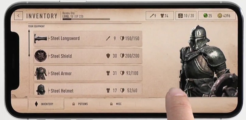 縦横どちらの画面でも遊ぶことができ、自由なマップ移動にくわえて、『Infinity Blade』ライクなスワイプベースのバトルになっていると推測される。