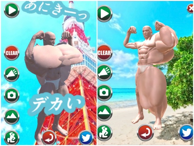 なお、育てたマッチョは好きなポーズで、好きな舞台に立たせてSNS共有できる。