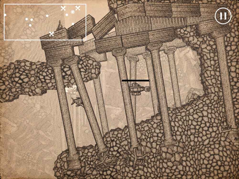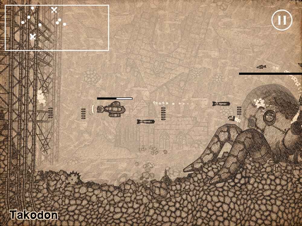 そんな海の中を動く操作は、スライド操作での移動と画面右側をタッチしての潜水艦反転(前面の方がショットが強い)操作だけで快適。ショットはオートだが、連打でOKな構成なので問題なし。