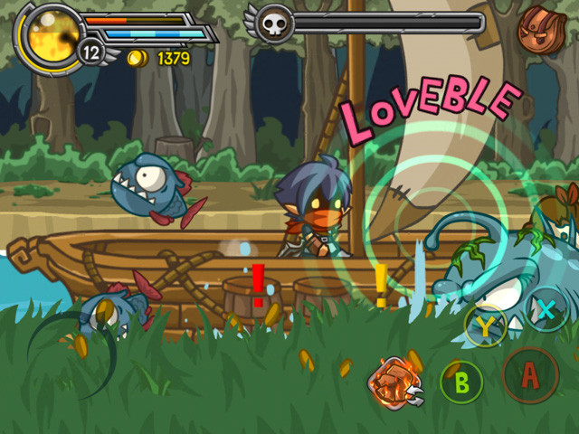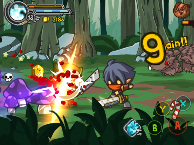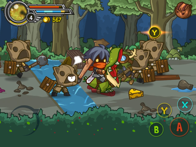 操作はバーチャルスティックによる移動+攻撃(A)、ジャンプ(B)、魔法(X)、回避(Y)の4ボタン。