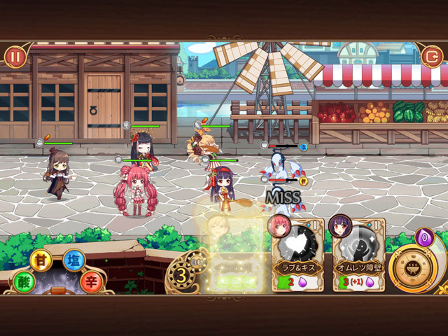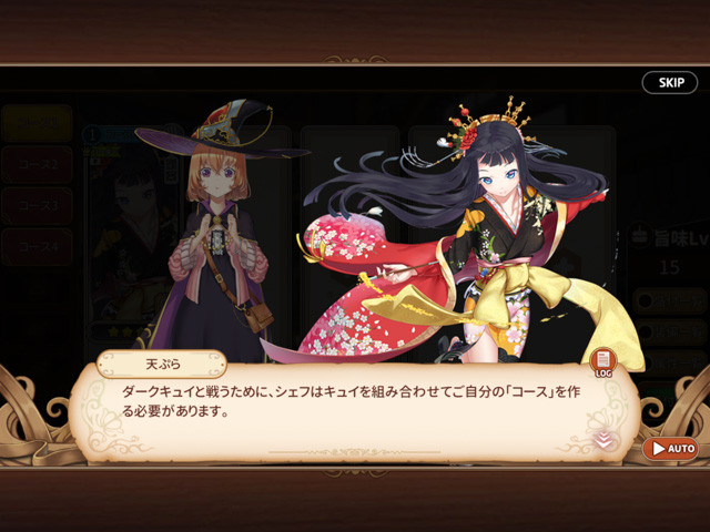 ……それはさておき、プレイヤーは主菜、副菜、飲み物、デザートなどのキュイから5つ選んでコースを作り、盛り付け(隊列を作る)する。このとき、相性の良い料理が隣り合っていると、特殊効果が発生する。コースを作ったら、ダークキュイと戦うべくクエストへ。