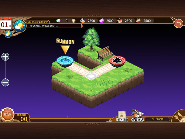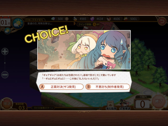 ボード上のマップにキュイを召喚して、行動ポイントを消費して指示を下す戦術ボードを移動し、敵を浄化するゲームとなっている。