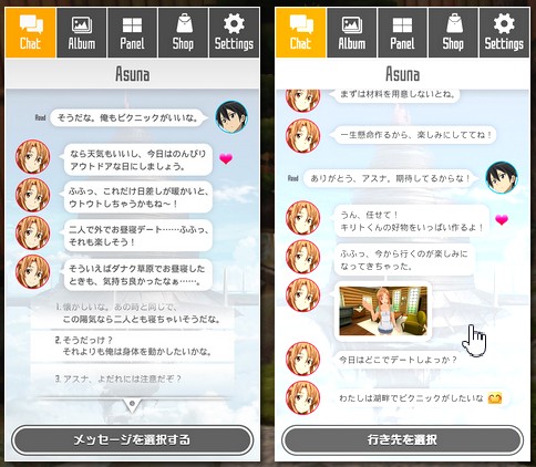 キリトになってアスナとチャットしてデートの予定を決めて……。