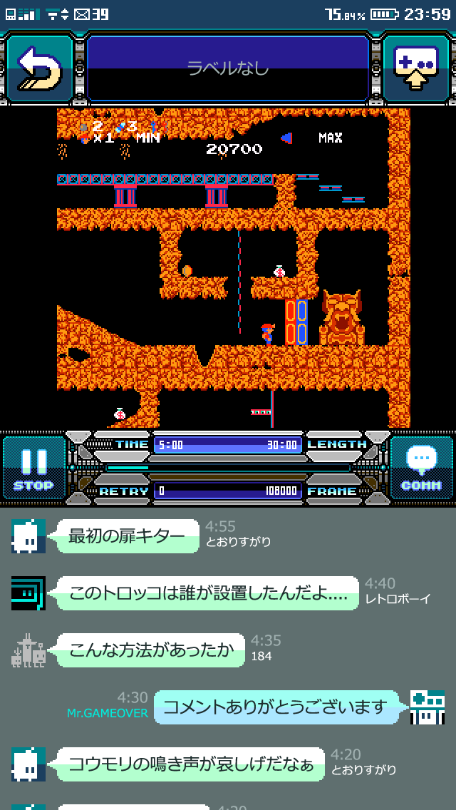 通常プレイに関してもなかなか便利で、『PicoPico』ではゲームプレイ中にいつでもセーブ・ロードでき、セーブデータをアプリ内に投稿して別プレイヤーが続きから遊ぶことも可能。