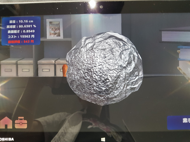 『クロンとゼリー』たつのるさんがデジゲー博2018で展示していた作品は、盛大なスマホ性能の無駄遣いゲー『アルミホイルをまるめてきれいな球体にするゲーム(※正式名不明)』だった。