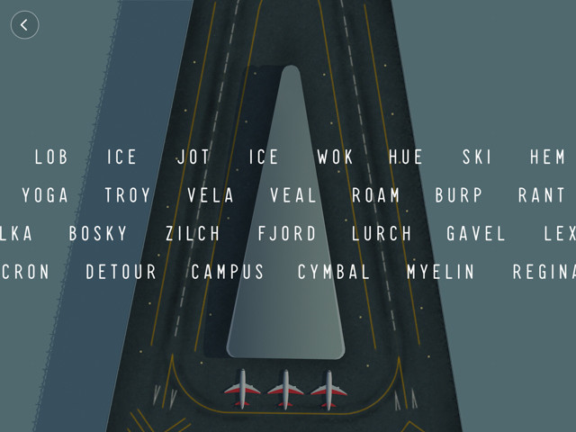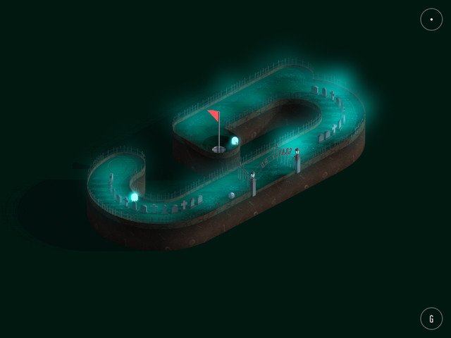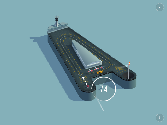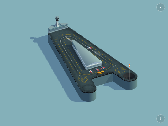 こういったゲームはアート一辺倒になりがちだが、『Alphaputt』は遊んでみるとゲームとしても楽しくて驚く。下のホールは、 A の Airport (空港)。