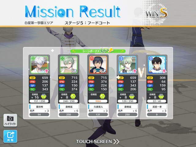 ミッションをクリアすると経験値が手に入って、ヒーローの信頼度が上がって(MAXになって覚醒すると個別ストーリーが解放される)。