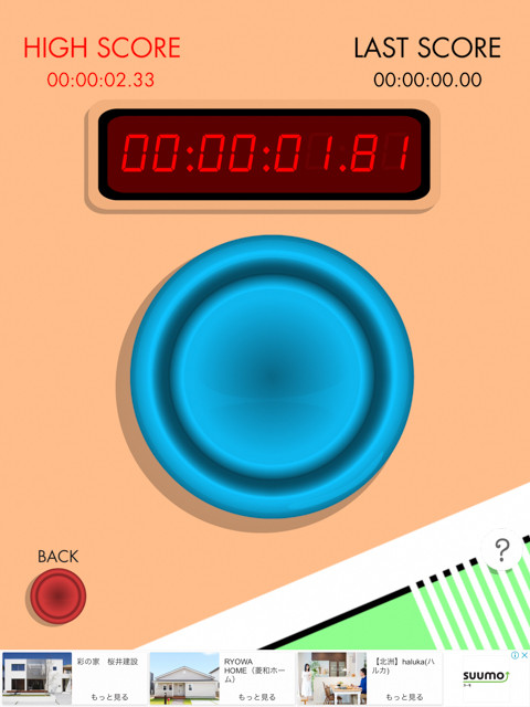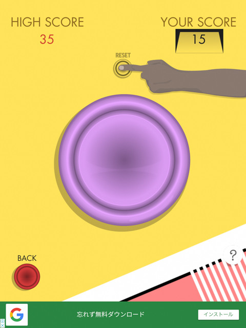 ……すごい、耐久モードではボタンを連打する必要すらない。ただ、画面に指を置き、ボタンを押し続けた時間だけがスコアとして記録される。