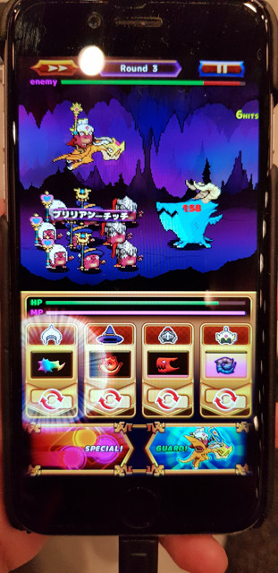 敵が攻撃してくるときはタイミングよく防御ボタンを押す。『騎士とドラゴン』と似ているようで、遊び味はだいぶ異なるゲームになっていた。