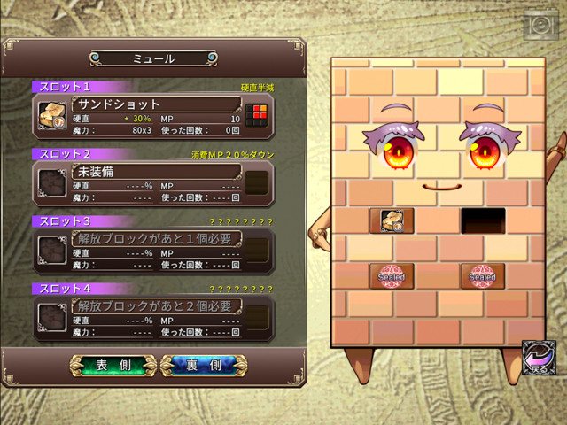 で、ゲームを見てみるといつもの見おろし型RPGなのだが、サクサク進むだけでなく、1度クリアした場所は敵の出現率をゼロ~3倍まで調節でき、、レベル上げも探索も快適。