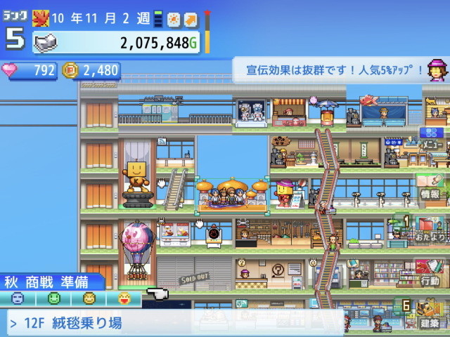 今作の大きな目標は、条件を満たして★5ランクのデパートになること。