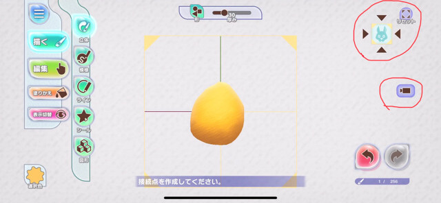 ▲カメラは右上の赤丸の▼を押せば向きを変える事が出来、画面の移動はカメラマークで出来ます。