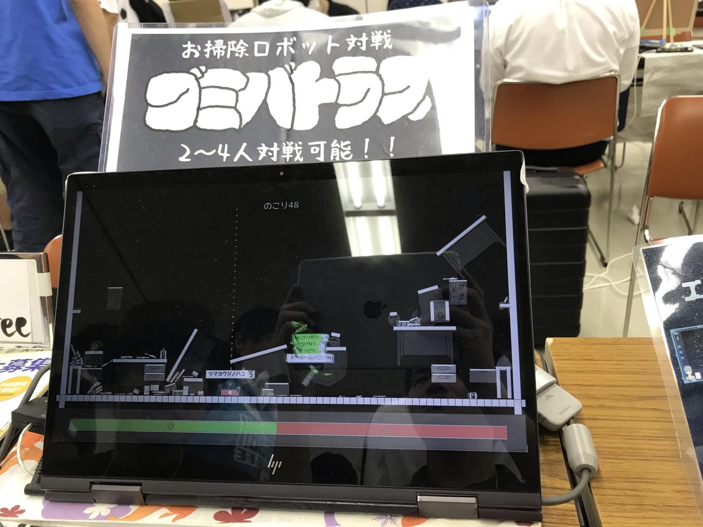 白黒の画面、掃除機ロボ(?)がゴミを拾ったり吸ったりして戦うユニークなゲーム。あまり遊ぶ時間がなかったが、機会があればまたやりたい……。